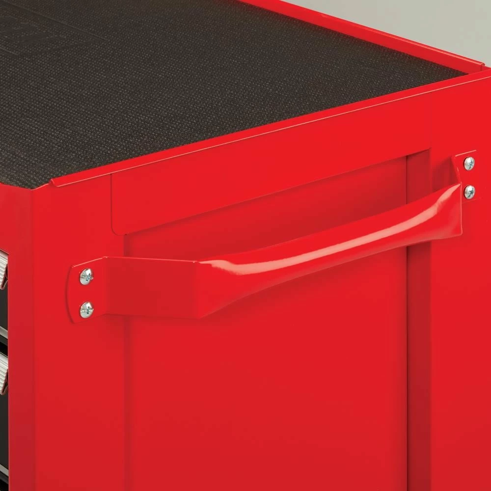 - Includes (1) Top mat for the tool cabinet surface; (1) Set of keys; (1) Rolling Tool Cabinet; (1) Caster Set; (1) Side Handle and Hardware