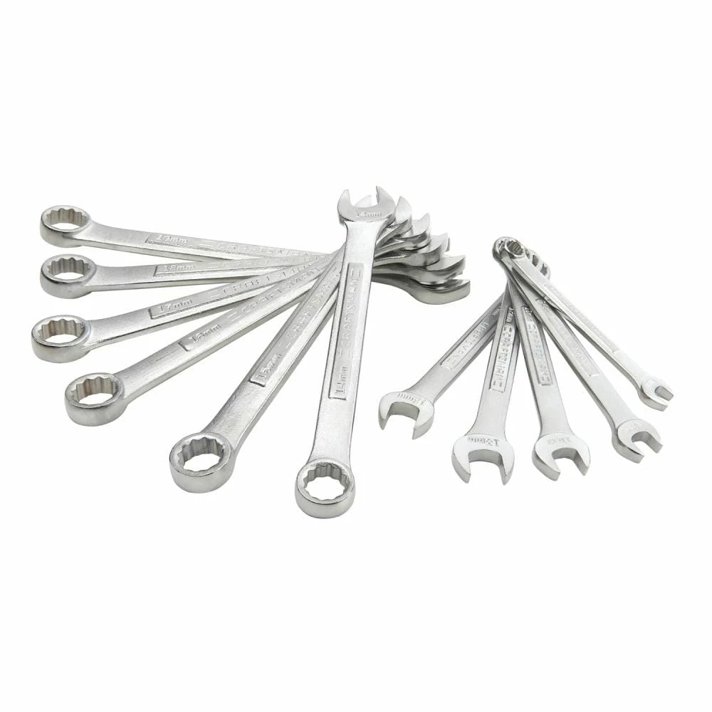 - Includes (11) Large Combination Wrenches Metric (8mm, 10mm, 11mm, 12mm, 13mm, 14mm, 15mm, 16mm, 17mm, 18mm, 19mm)