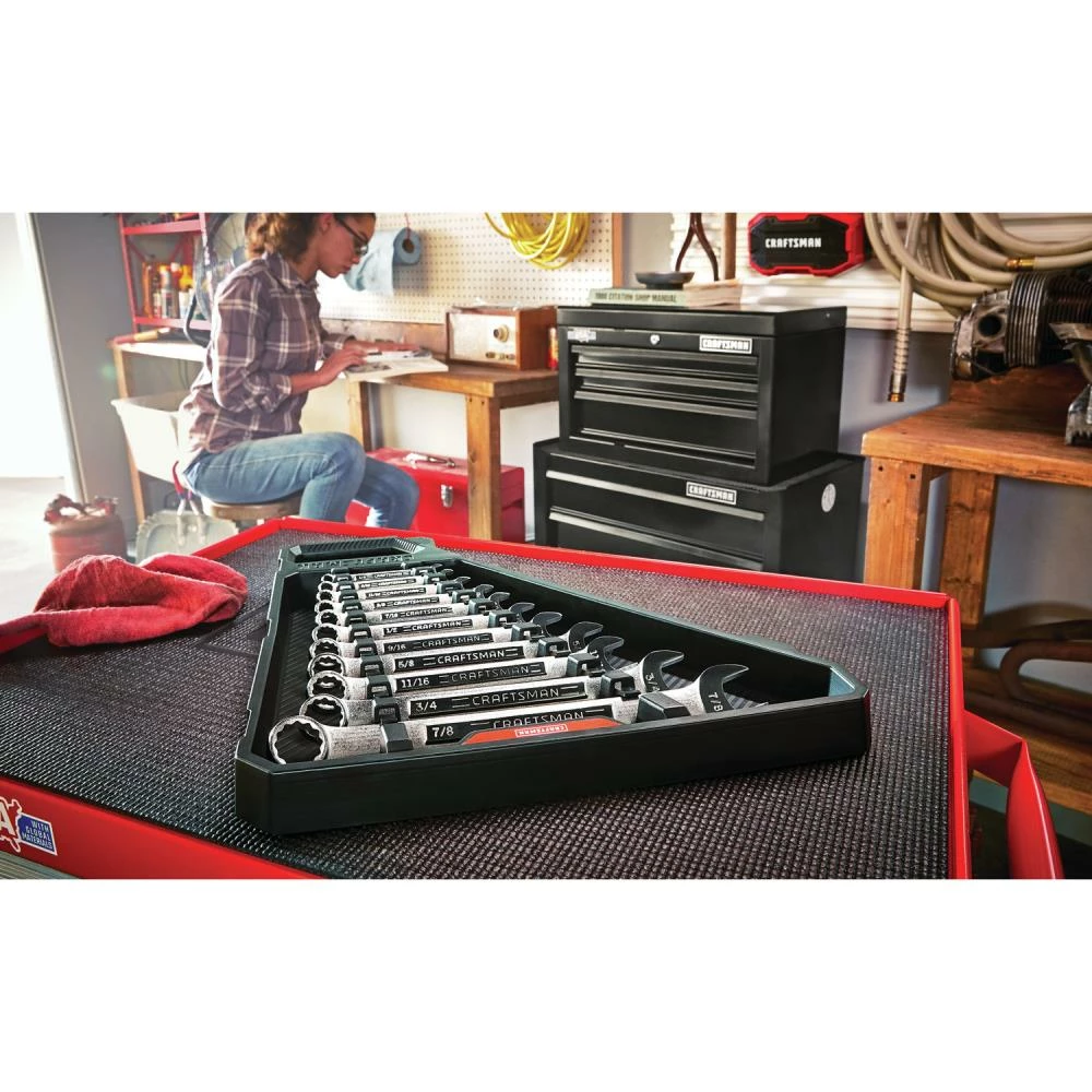 The CRAFTSMAN® 11-piece Large SAE Combination Wrench Set offers a number of applications fromThe standard bolt turning to working on specific automotive repairs.