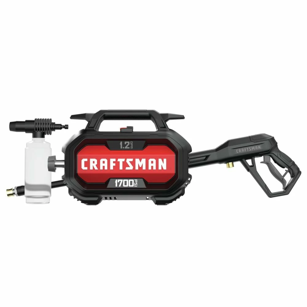 CRAFTSMAN® 1,700 MAX PSI Electric Cold Water Pressure Washer is compact for storage, but powerful enough for your outdoor cleaning tasks. With a soap applicator and two nozzles, including a turbo nozzle, you have the accessories you need to wash your car or clean your back patio. The pressure washer wand contains a comfort grip that is designed for ease of use.