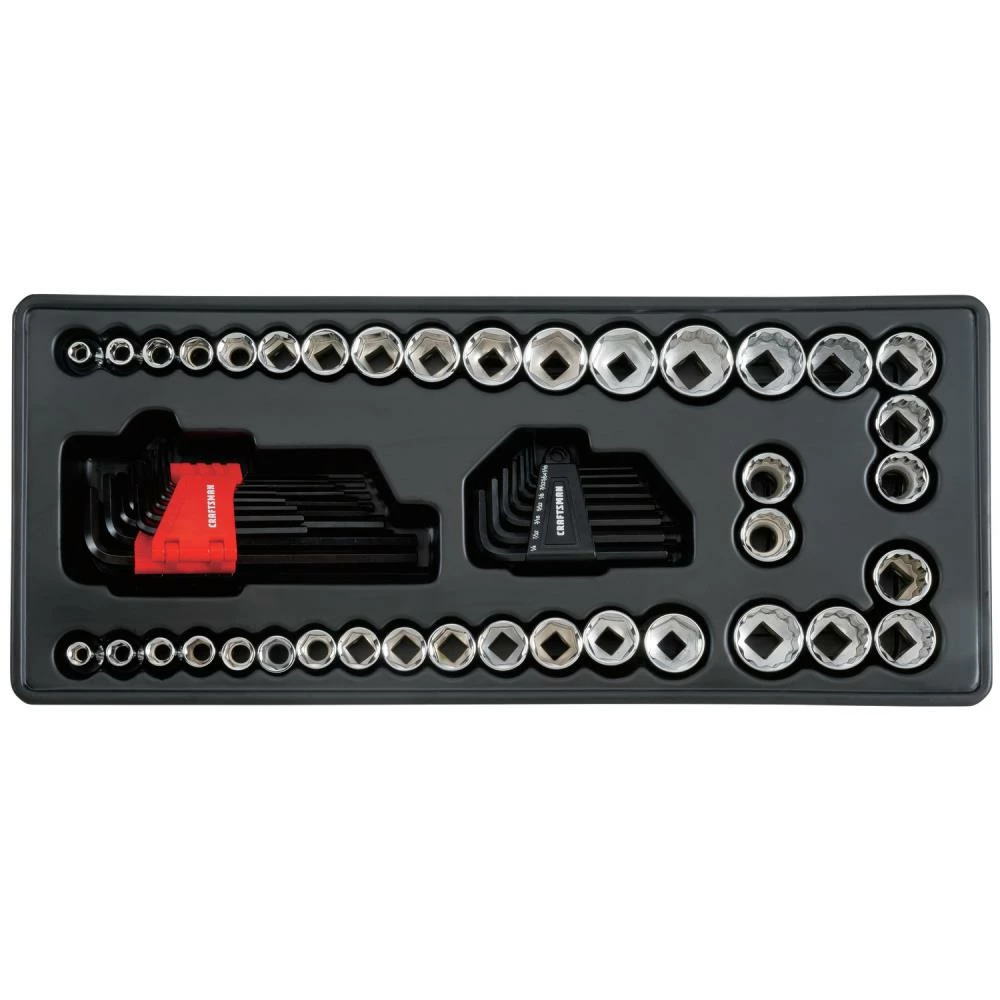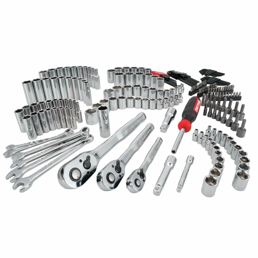 CRAFTSMAN® 218-Piece Mechanic Tool Set is a comprehensive 1/4-in, 3/8-in and 1/2-in drive mechanic tool set that is packed into CRAFTSMAN’S Portable Tool Box with 20.5-in ball-bearing drawers. An ideal set to incorporate into an existing arsenal of tools, or great starter set. This set features 72 Tooth 1/4-in, 3/8-in, and 1/2-in Drive Quick Release Ratchets (CMMT81747, CMMT81748 and CMMT81749) which provides users with an ideal balance between durability and accessibility. All tools meet or exceed ASME specifications and are backed by CRAFTSMAN’S Full Lifetime Warranty. CRAFTSMAN’S Portable Metal Tool Box is backed by a 1 Year Warranty. Take on your next project with CRAFTSMAN’S Full Polish Chrome 218-piece Mechanics Tool Set.