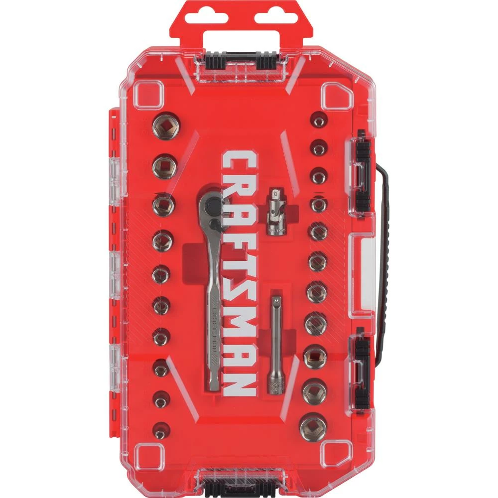 - Includes (10) 1/4-in Dr Shallow 6 PT Sockets SAE (5/32,3/16,7/32,1/4-in,9/32,5/16,3/8,7/16,1/2,9/16-in), (11) 1/4-in Dr Shallow 6 PT Sockets MM (4,5,6,7,8,9,10,11,12,13,14mm), (1) 120T 1/4-in Ratchet, (1) 1/4-in Dr Ext Bar (3-in), (1) 1/4-in Dr Univ Joint