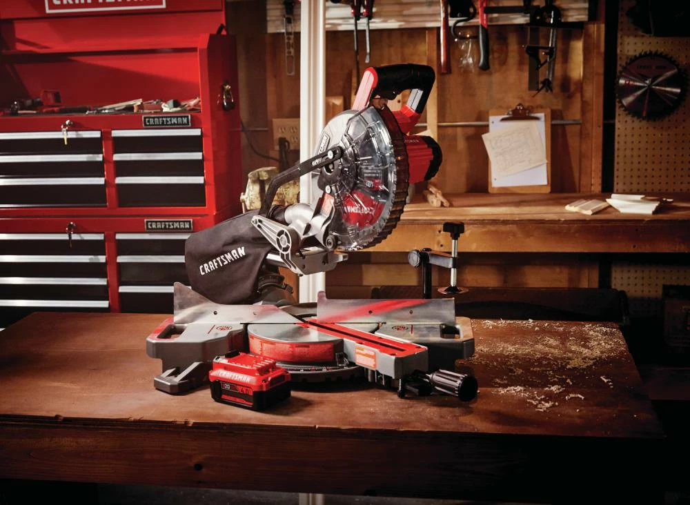 - Includes (1) CMCS714 7-1/4-in Sliding Miter Saw; (1) CMCB204 V20 20V MAX 4.0Ah Lithium Ion Battery; (1) CMCB104 V20 20V MAX Lithium Ion Fast Charger; (1) Carbide Tipped Blade; (1) Blade Wrench; (1) Material Clamp; (1) Dust Bag