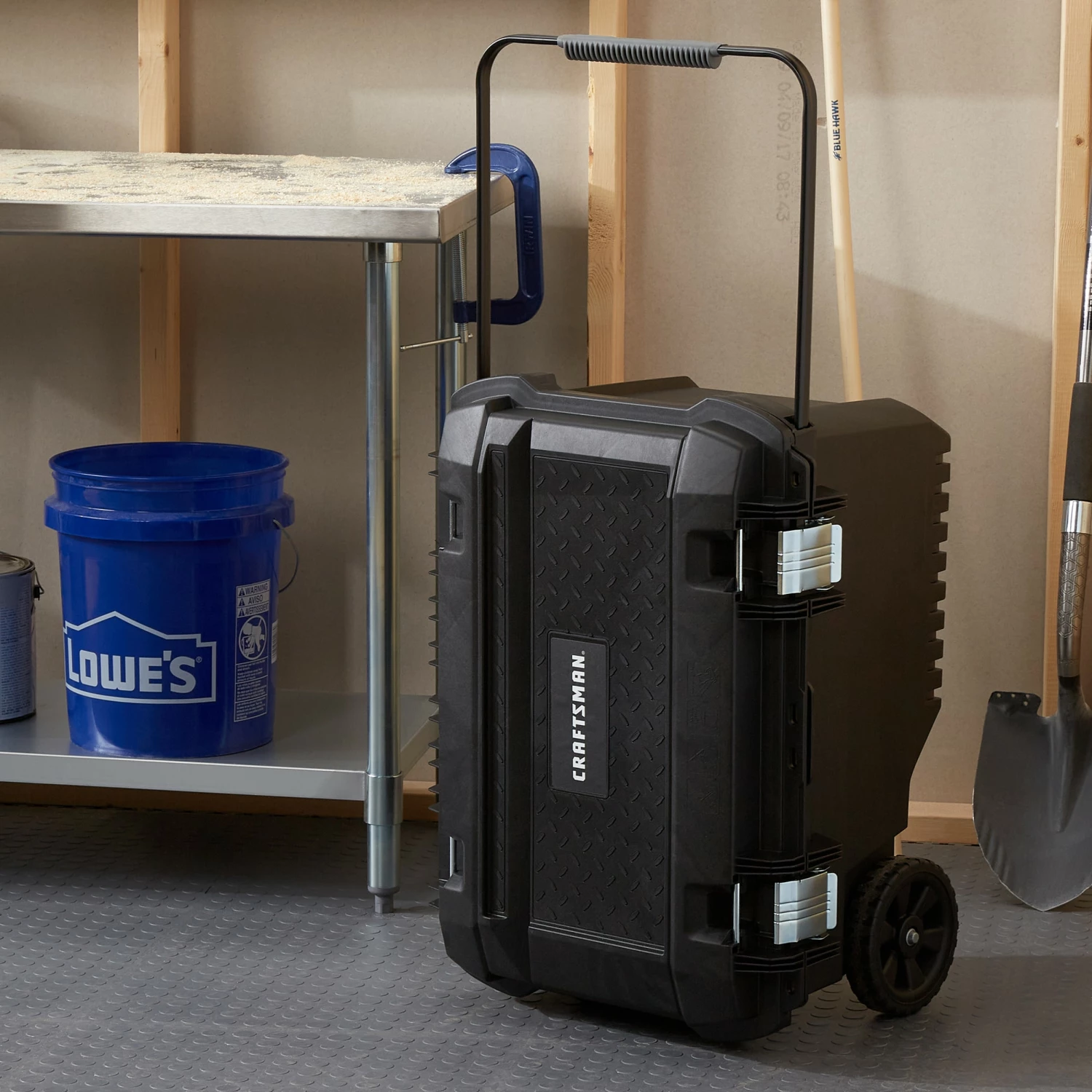 24-Gal Wheeled Lockable Tool Box has metal rail inserts for loading additional equipment on lid top and and professional metal latches.
