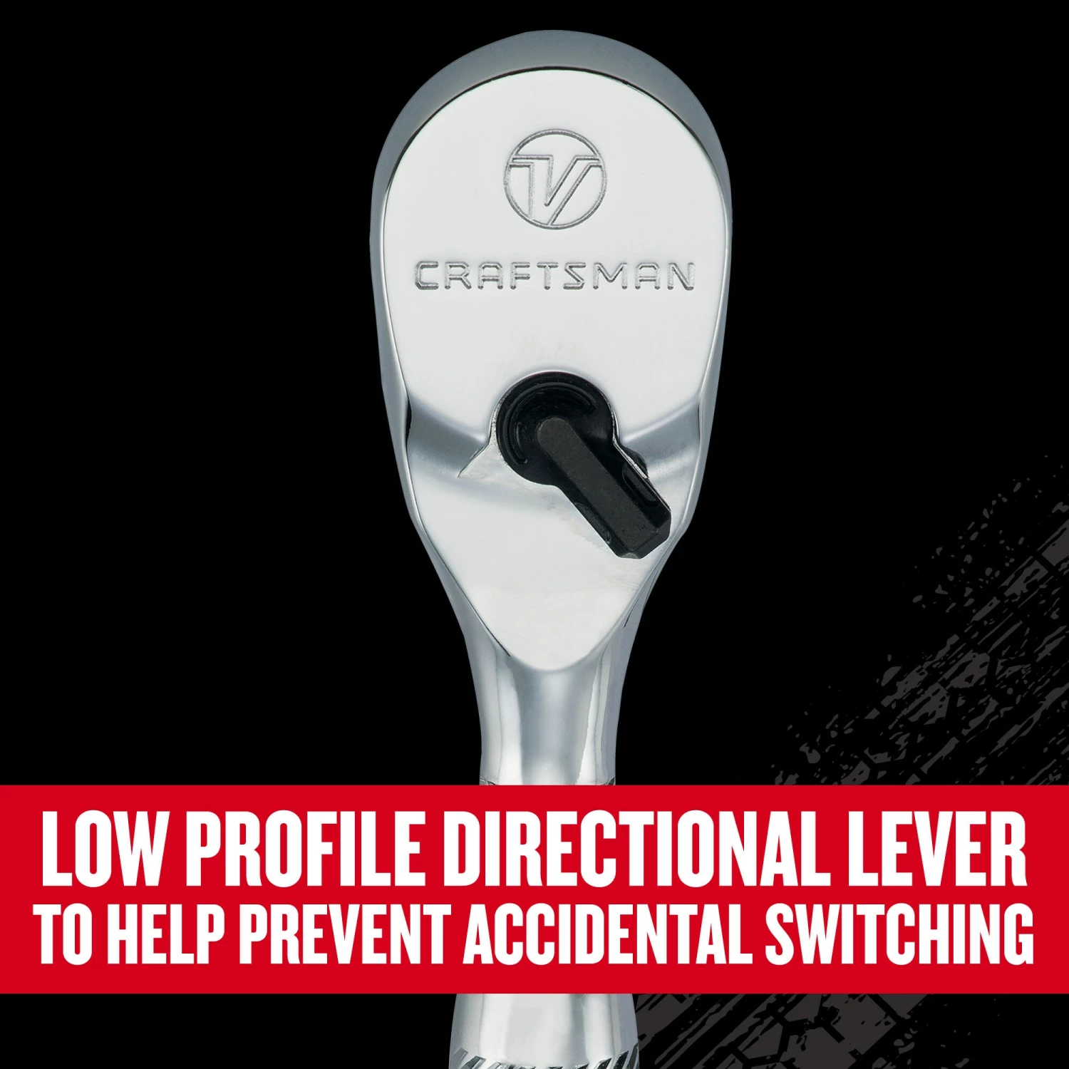 The V-Series 2-Pack 1/4-in and 3/8-in Drive Ratchets delivers unprecedented performance to the Craftsman brand. Engineered for professionals, these 1/4-in and 3/8-in Drive Ratchets are constructed with Precision Engineered Gears that provide users with improved tool life and durability. Their 80 and 96 tooth designs produce short 4.5 degree and 3.75 degree arc swings that enable users to access the tightest of spaces without sacrificing strength. Backed by Craftsman’s Lifetime Warranty, this product is designed to deliver the quality and durability expected from the Craftsman brand. If the product fails to perform for any reason, we will replace it. Return damaged product to a stocking Retail Partner or call 1-888-331-4569 for details. No proof of purchase required.