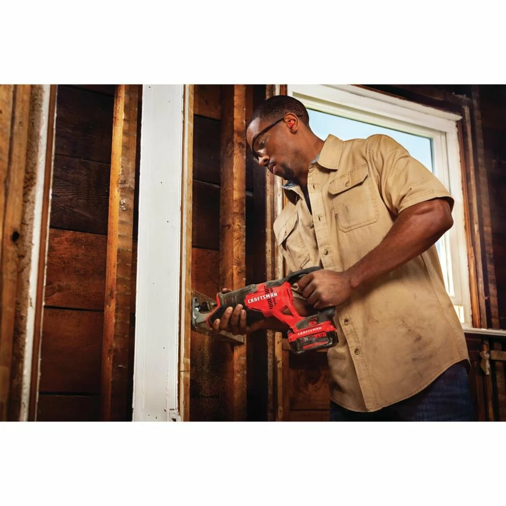 V20 Cordless Reciprocating Saw Kit (1 Battery) has a powerful high performance for increased speed of application. The variable speed trigger provides optimal control while the tool-free blade release makes for quick and effortless blade changes. A contoured over-molded handle and compact design allows the user to make cuts in tight places minimizing user fatigue.