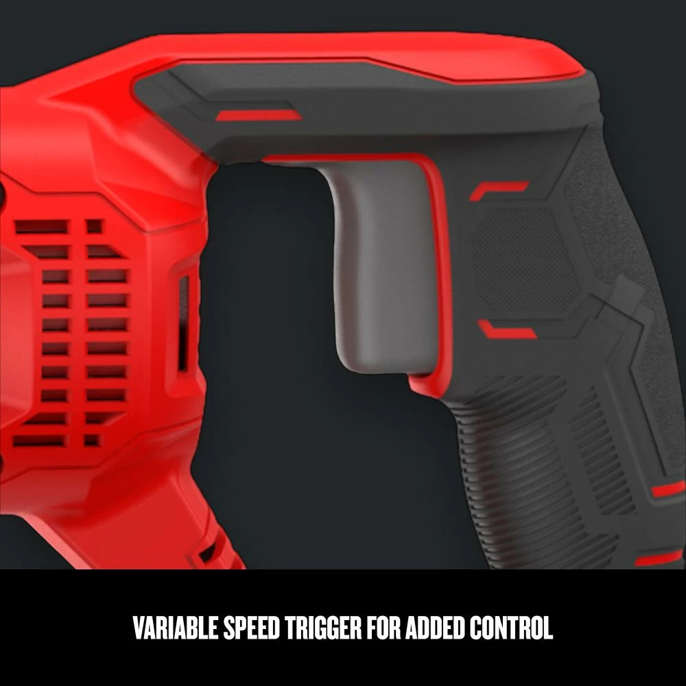 7.5 Amp Reciprocating Saw has a powerful 7.5 Amp motor with a 1-1/8-in stroke length for speed of application. The variable speed trigger provides optimal control over a variety of materials. Cut in a variety of positions and be comfortable doing so with the over-molded handle.