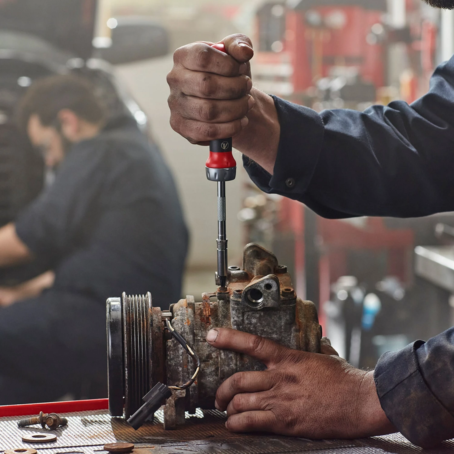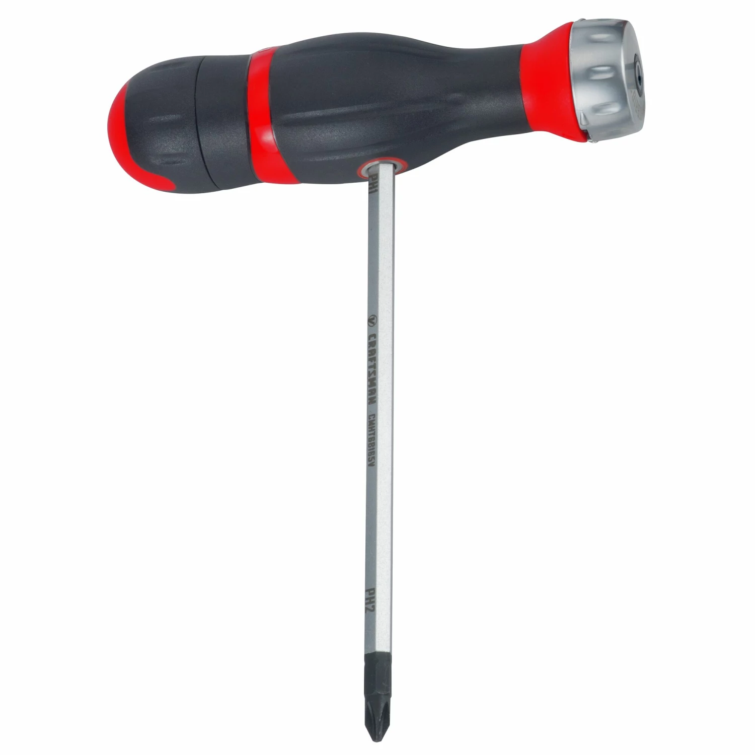 The Craftsman® V-Series 18pc 3-in-1 Ratcheting Screwdriver X-Tract™ Bit Set offers the multi-functionality of a standard ratcheting screwdriver, T-handle and stubby in one versatile design. Install a bit into the top port to use as a standard ratcheting screwdriver or in the side port for t-handle action when additional torque is required or unscrew the bottom cap and use as a stubby when access is limited. This set includes X-Tract™ bits designed to remove fasteners up to 50% rounded, while also helping to prevent rounding or stripping of new fasteners. All bits are manufactured from premium S2 steel for strength and durability. Up to 6 bits store conveniently in the handle.