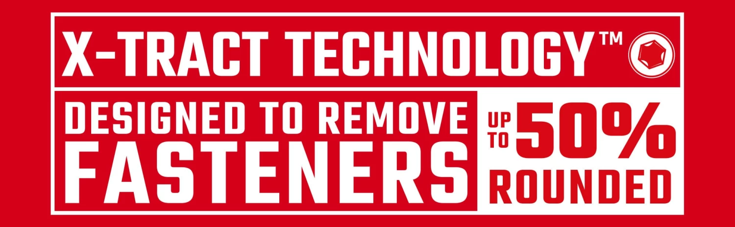 - EXTRACTION – X-Tract™ Technology designed to remove fasteners up to 50% rounded