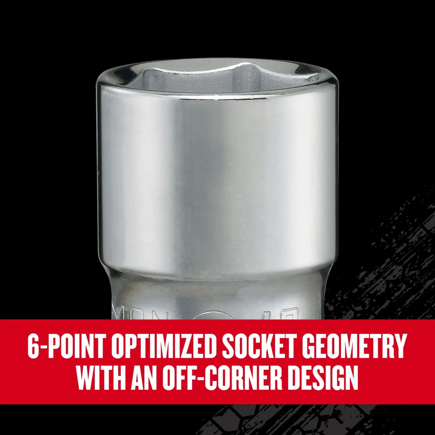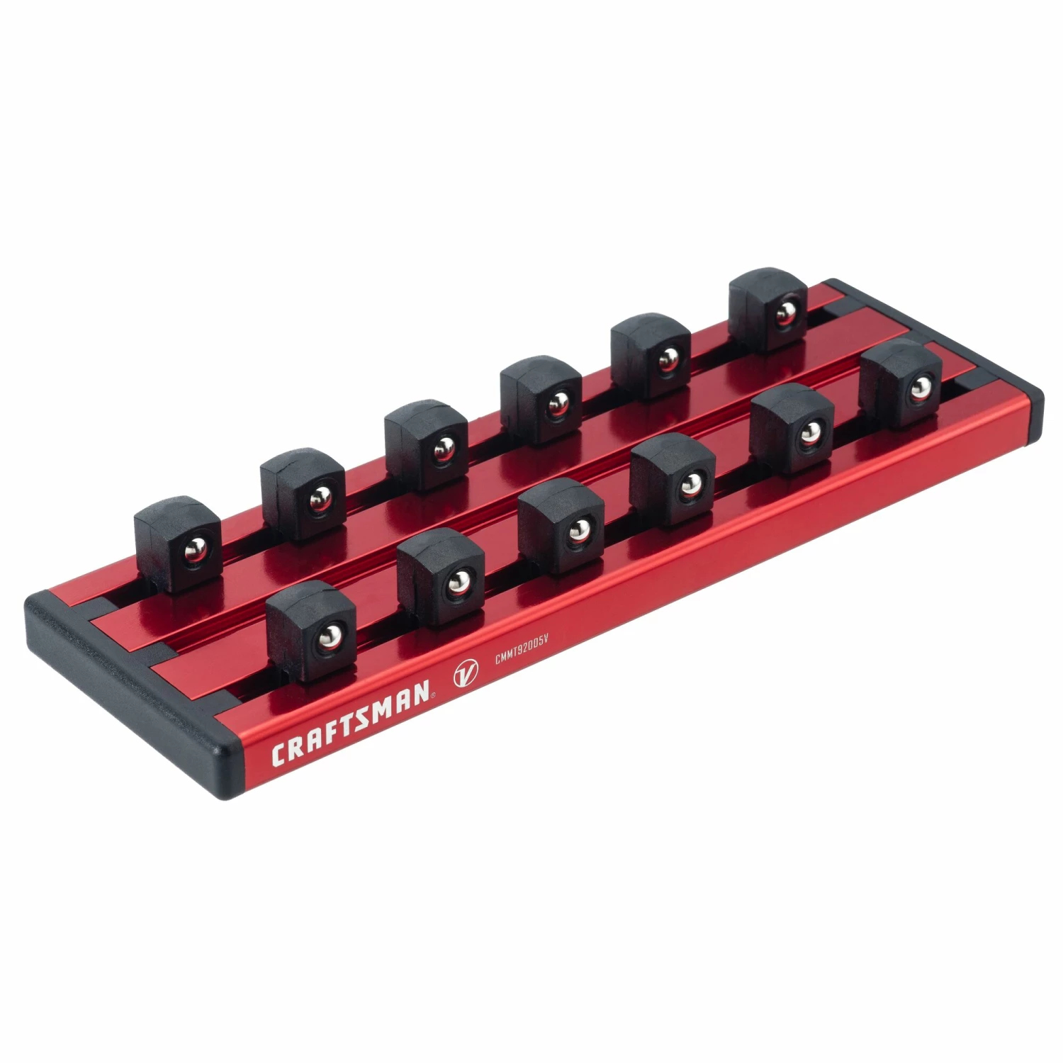 The V-Series 12PC. 3/8″ Drive Metric 6-Point Socket Set delivers unprecendented performance to the Craftsman brand. Engineered for professionals, this socket set features a magnetic socket rail for easy socket storage and organization. The sockets have premium features such as the 6-Point Socket Geometry that maximizes torque onto the flats of fasteners with an off-corner design. Other features include a chamfered and tapered tip design, which provides users with quicker socket-to-fastener engagement. Backed by Craftsman’s Lifetime Warranty, this product is designed to deliver the quality and durability expected from the Craftsman brand. If the product fails to perform for any reason, we will replace it. Return damaged product to a stocking Retail Partner or call 1-888-331-4569 for details. No proof of purchase required.