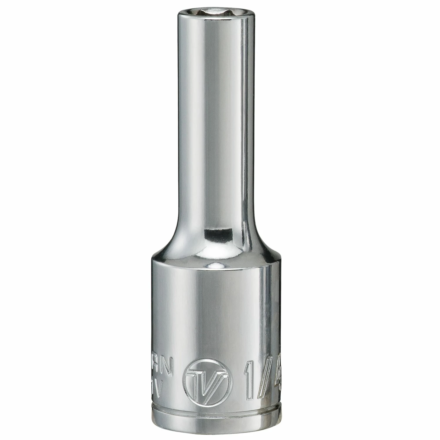 - Includes (12) Sockets: 1/4-in, 5/16-in, 11/32-in, 3/8-in, 7/16-in, 1/2-in, 9/16-in, 5/8-in, 11/16-in, 3/4-in, 13/16-in, 7/8-in