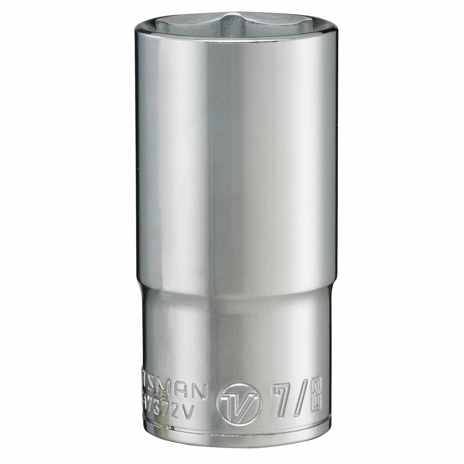 The V-Series 12PC. 3/8″ Drive SAE Deep 6-Point Socket Set delivers unprecendented performance to the Craftsman brand. Engineered for professionals, this socket set features a magnetic socket rail for easy socket storage and organization. The sockets have premium features such as the 6-Point Socket Geometry that maximizes torque onto the flats of fasteners with an off-corner design. Other features include a chamfered and tapered tip design, which provides users with quicker socket-to-fastener engagement. Backed by Craftsman’s Lifetime Warranty, this product is designed to deliver the quality and durability expected from the Craftsman brand. If the product fails to perform for any reason, we will replace it. Return damaged product to a stocking Retail Partner or call 1-888-331-4569 for details. No proof of purchase required.