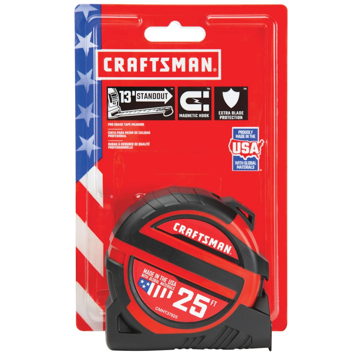 Measure twice, cut once, and rely on CRAFTSMAN® tape measures for fast and accurate measurements. Our PRO-13 tape measures are heavy-duty professional grade models with 13-ft of standout for maximum reach when working alone. These 1-1/4-in wide tapes are made in the USA with global materials and feature extensive rubber overmold for added grip and durability. The blade also features a Mylar coating and BladeArmor hook protection to ensure these tapes can withstand the rigors of daily use on the jobsite. A magnetic end hook also allows for easy measurements when working with metal studs, conduit, pipes, ductwork or other ferrous metal surfaces.