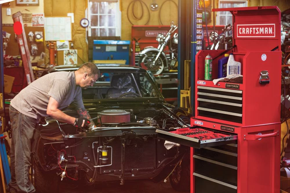 - CRAFTSMAN embossed mats protect surfaces under the lid, on top of the cabinet and the charging station