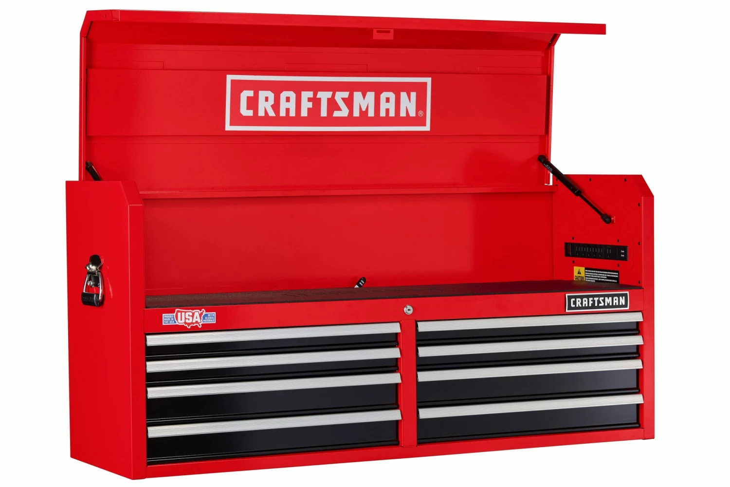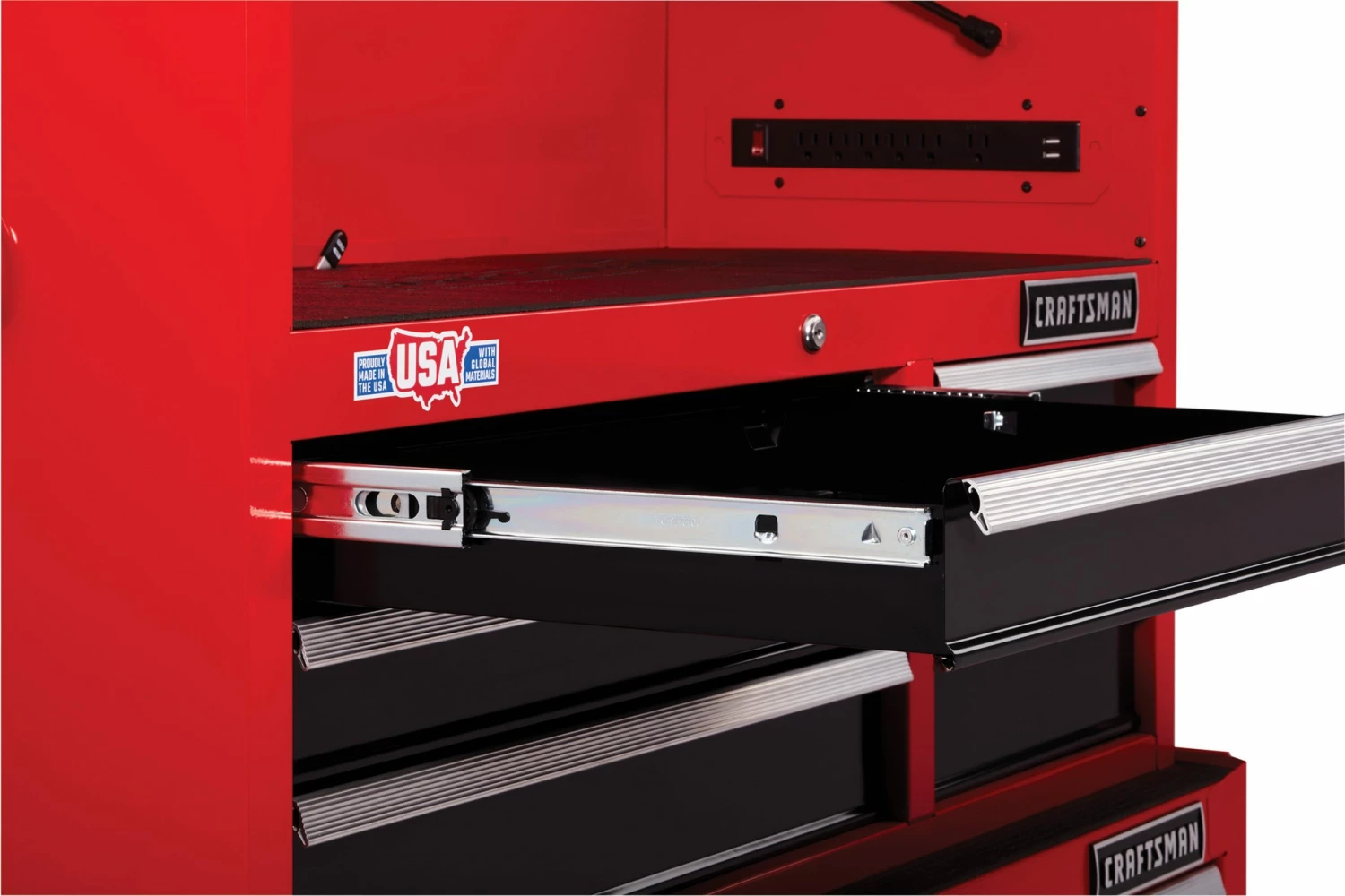 Proudly Made in the USA with Global Materials in Sedalia, Missouri. The 2000 series 51.5-in Wide 8 Drawer Tool Chest provides the user with the convenience of having an integrated power strip with USB ports for charging batteries, devices and more.