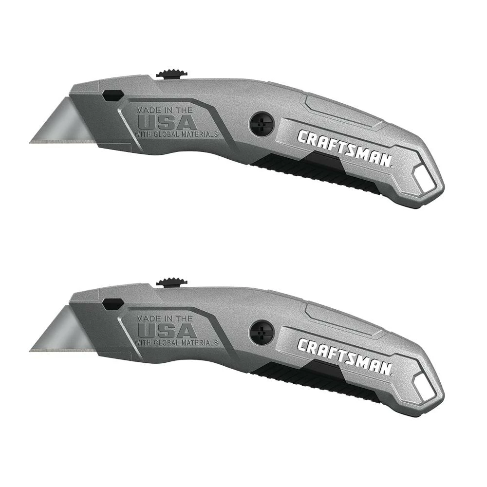 Step up convenience with this durable, made in USA, CRAFTSMAN® retractable knife. Complete with quick blade change button and easy open blade storage. And then double it with this 2-pack. Keep one in the garage and the other in the tool box. Or give one to your buddy who always seems to need to borrow your knife.