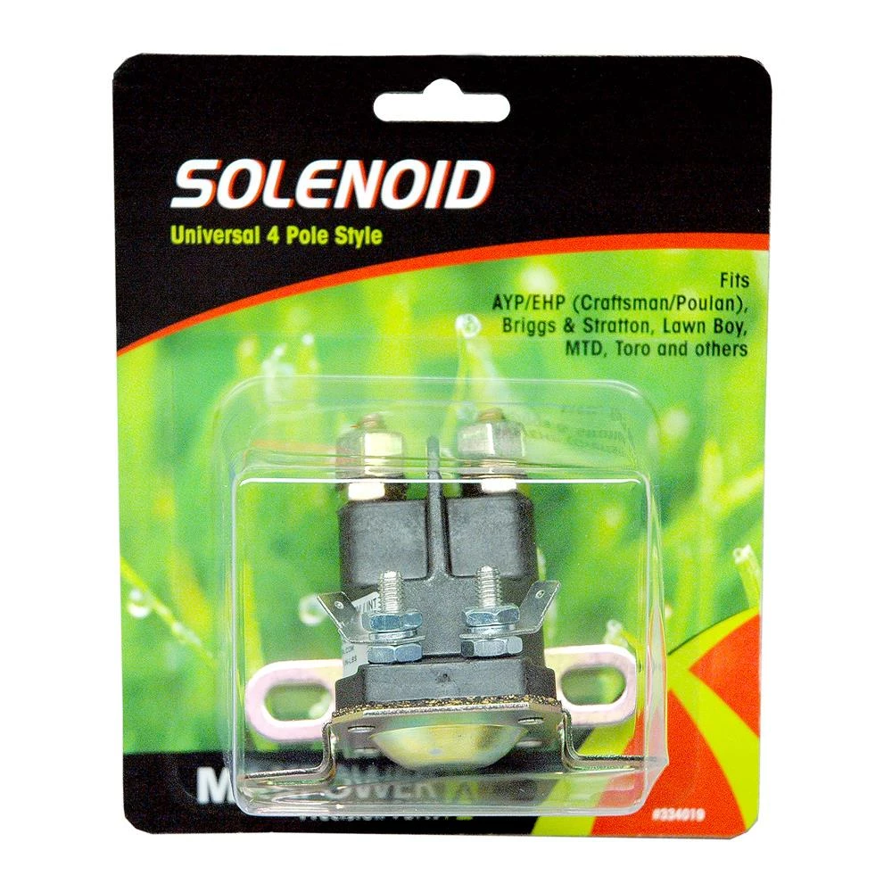 MaxPower’s 334019 universal 4 pole solenoid features a 12 volt terminal post to fit both 5/16-in and 1/4-in terminal connectors. Mounting brackets to accommodate chassis and wall mount configurations are included. Replaces OEM numbers Ariens 03551000, 35510; Bolens 1753539; Briggs & Stratton 5410H, 5410K; Case/Ingersoll C-33025; Gilson 212655; Grasshopper 184251; Gravely 0355100, 03551000, 355100, 45071; Craftsman, Husqvarna, Poulan 109946, 146154, 532 10 90-81, 532 10 99-46, 532145673, 532146154, 532175141, 532178861; MTD, Cub Cadet, Troy-Bilt 725-04437; John Deere AM133094, AM138497, AUC10907; Lawn-Boy 740207; Murray 745001MS; Simplicity 16771993, 16852980, 1700751; Snapper 1-8604, 1755382YP, 7075622, 7075622SM, 75622; Toro 1101162, 1101167 and 47-1910, 740207. MaxPower’s extensive line of replacement parts are manufactured to meet or exceed OEM specifications. To ensure a proper fit, please check your owner’s manual to verify the proper replacement filter number and be sure that it matches one of the OEM numbers listed in this description.