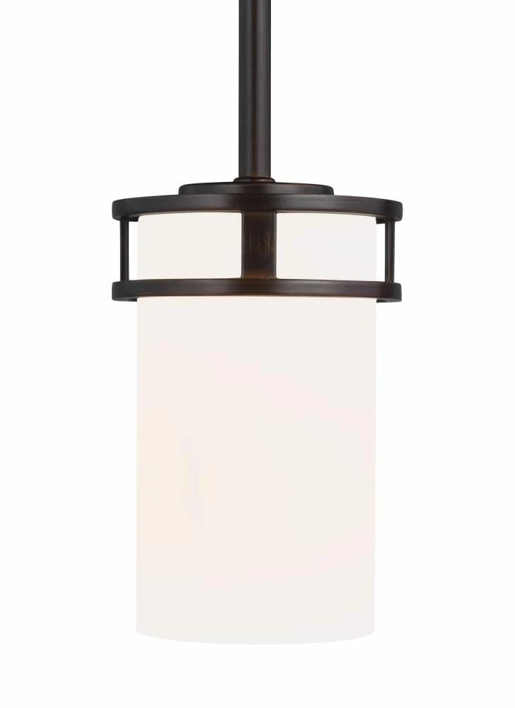 Named after the US National Historic Landmark on the campus of University of Chicago. The Robie family lives up to it’s name with it’s Prairie style of architecture, exuding horizontal lines and a broad overhanging The Sea Gull Collection Robie one light mini pendant in bronze enhances the beauty of your home with ample light and style to match today’s trends.